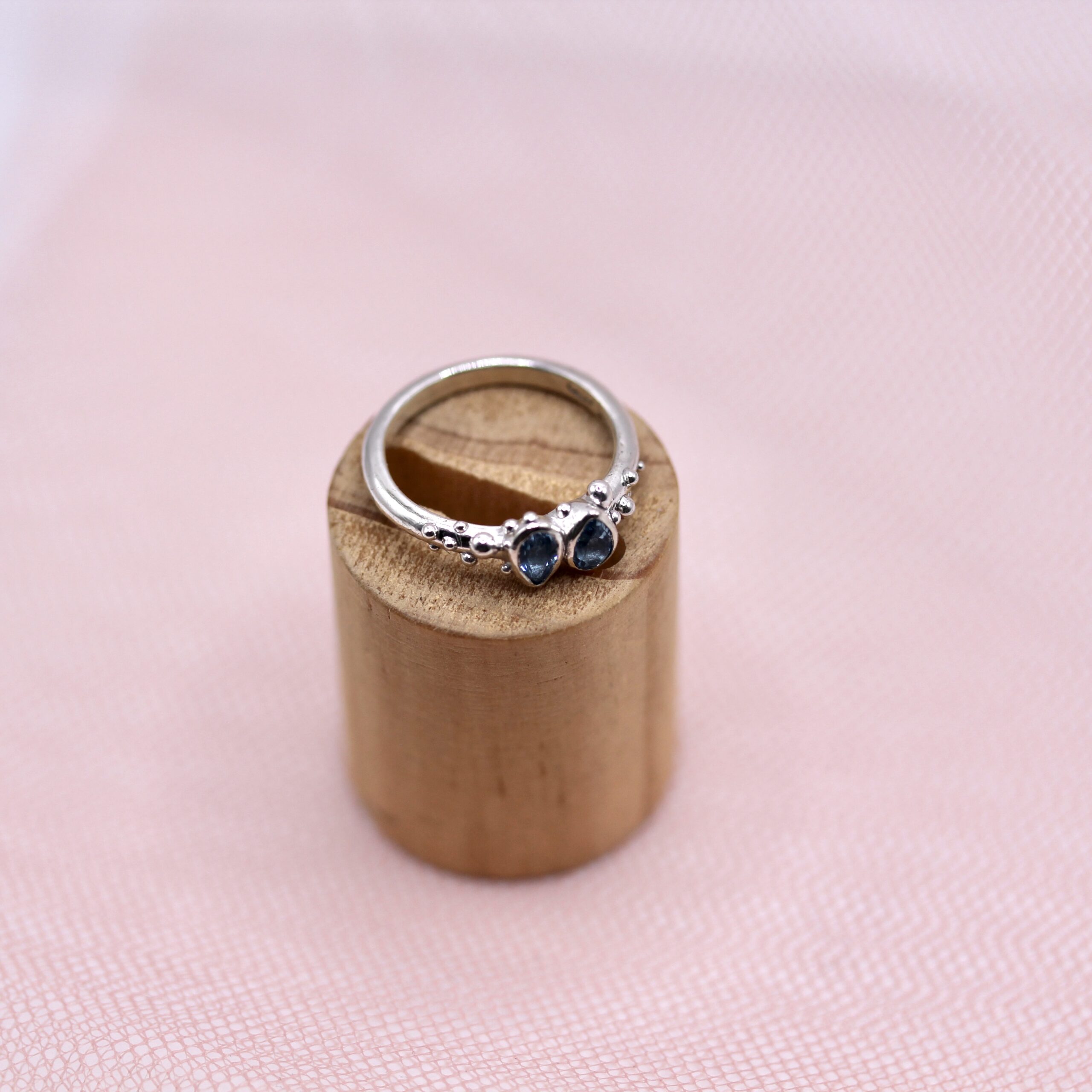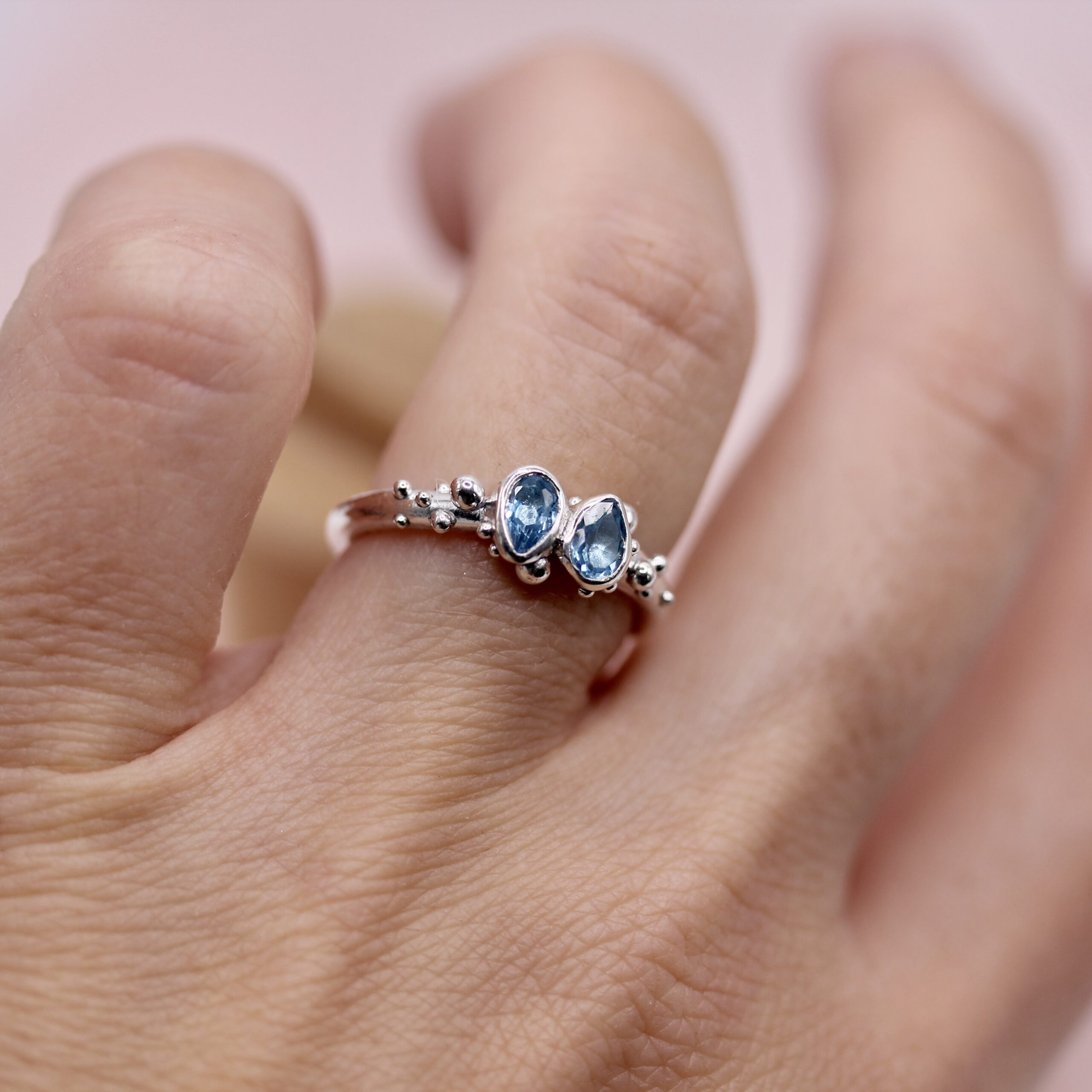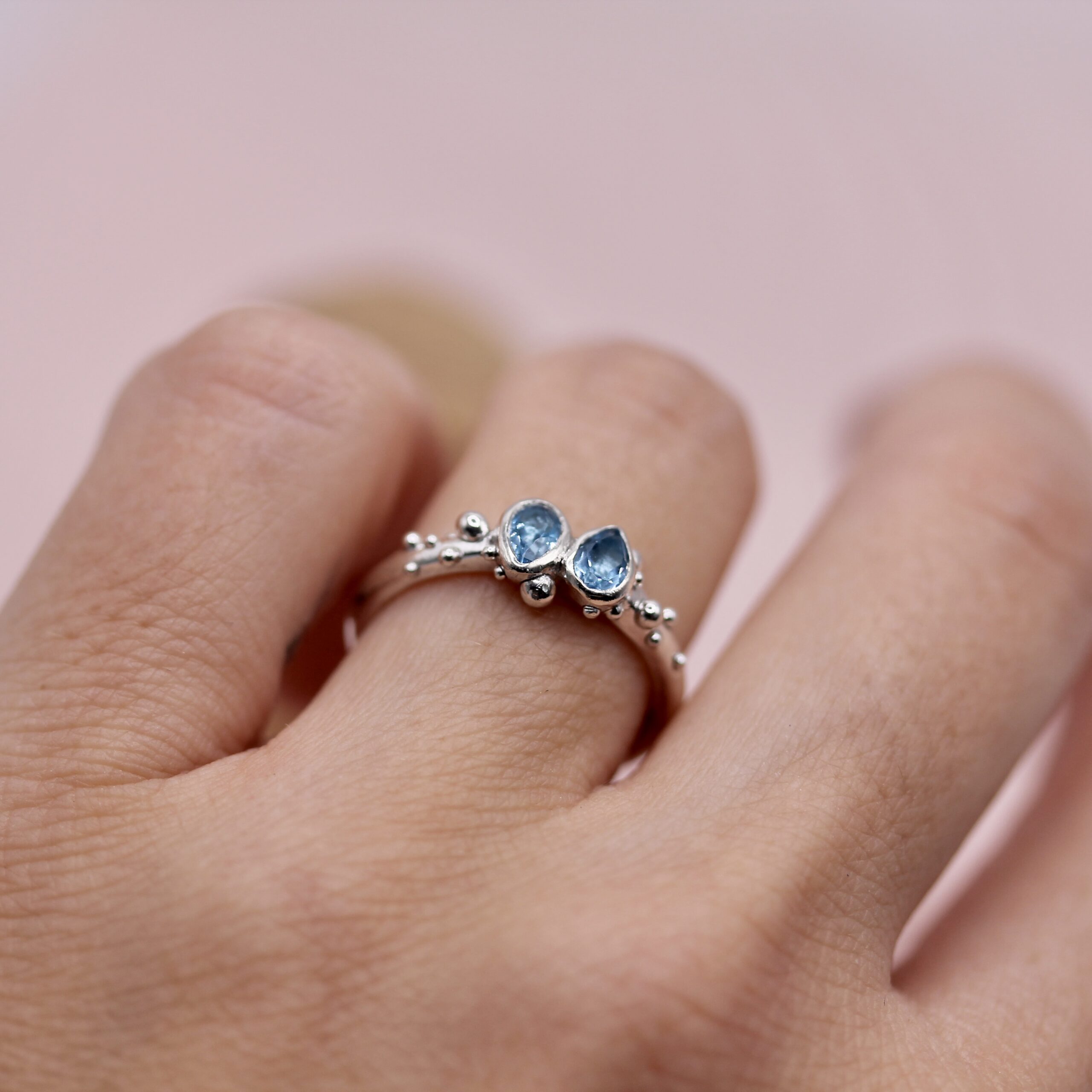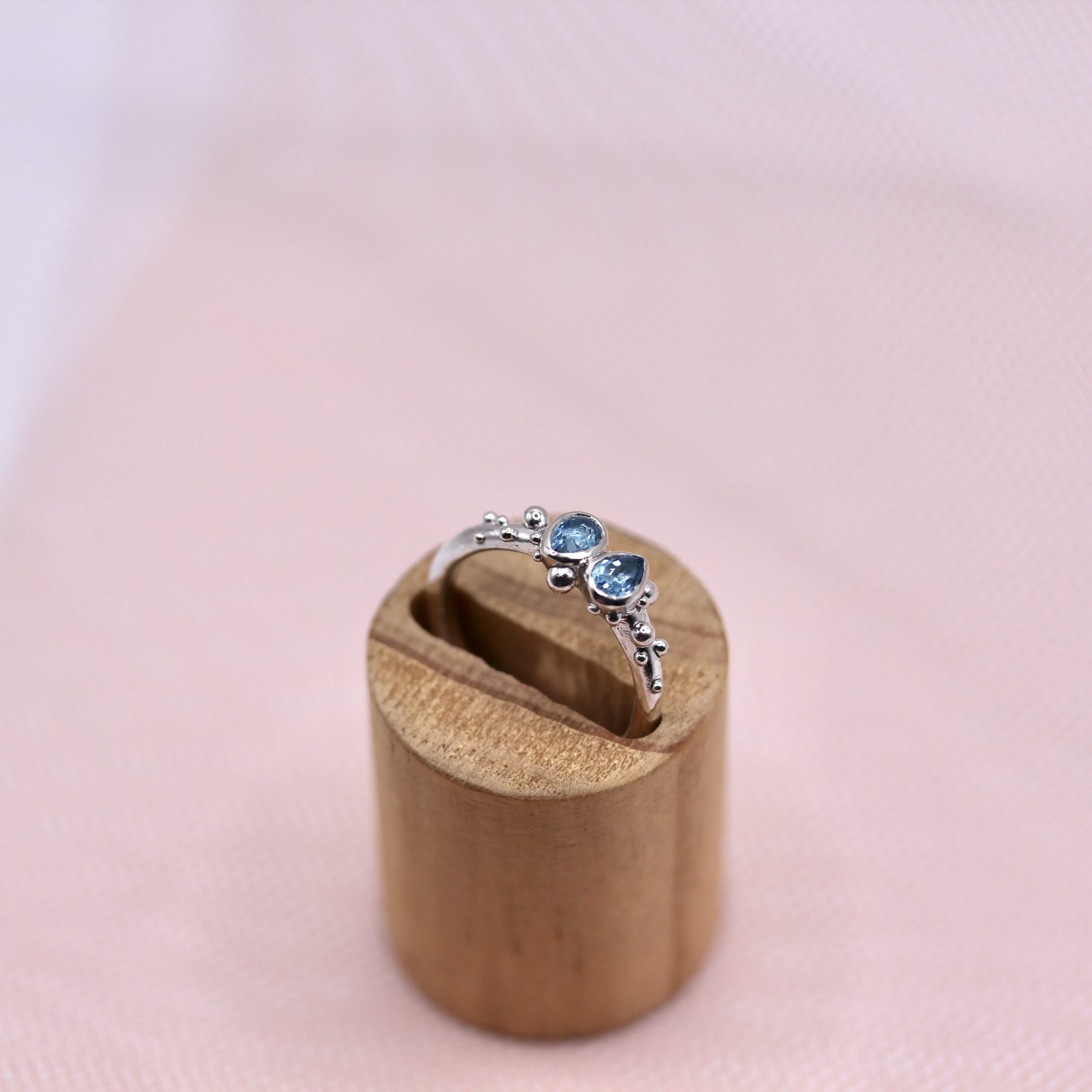 Anello misura 11 in argento 925 con topazi azzurri in taglio goccia da 6x4mm.